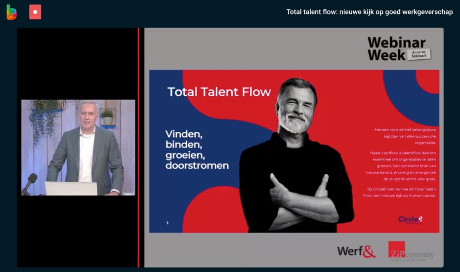Van 6 tot en met 10 februari 2023 deelden boegbeelden, specialisten en ervaringsdeskundigen op de arbeidsmarkt hun kennis tijdens de 11e Webinar Week van Werf& en ZiPconomy. Op de afsluitende dag verzorgde Wouter Waaijenberg de drukbezochte webinar “Total talent flow: nieuwe kijk op goed werkgeverschap”